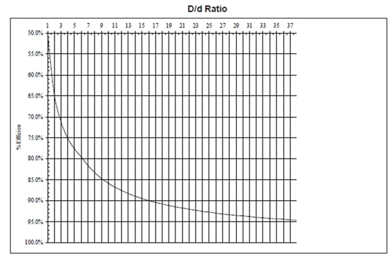 Para determinar essa redução, a relação D / d deve ser calculada e depois verificada em uma tabela como a Tabela abaixo: