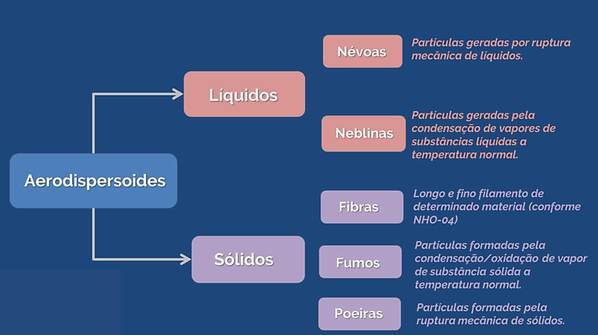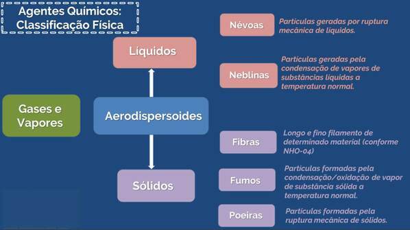 A classificação de agentes químicos que mais estão presentes na higiene ocupacional encontram-se em seu estado físico. O primeiro grupo de maior densidade consiste no grupo de materiais particulados, denominados também de aerodispersóides. Neste grupo em questão, os agentes contaminantes são pequenas partículas em estado sólido ou partículas em estado líquido presentes no ar.