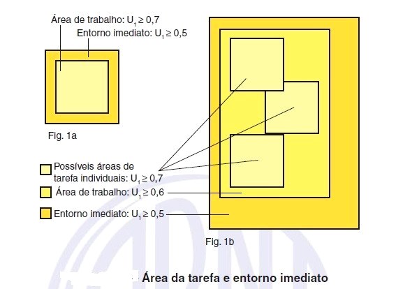 É importante entender que a área da tarefa é definida como a área parcial no local de trabalho em que a tarefa visual é realizada. O desempenho visual necessário para a tarefa visual é determinado pelos respectivos elementos visuais (tamanho dos objetos, contraste de fundo, luminância dos objetos e tempo de exposição) da atividade realizada. Para os locais onde o tamanho e/ou a localização da área da tarefa é desconhecida, a área onde o trabalho pode ocorrer é considerada a área da tarefa.