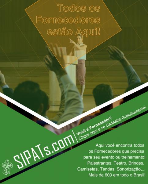 SIPAT. Encontre todos os Fornecedores que precisa para sua SIPAT. Palestrantes, Teatro, Brindes, Tendas, Som, Cadeiras. Orçamentos rápidos.